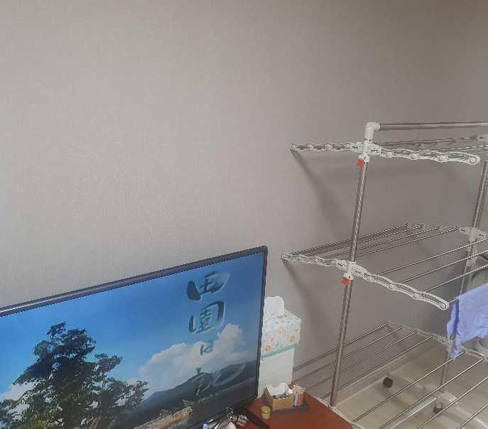 우리집 거실이에요~ tv랑 건조대 있어요