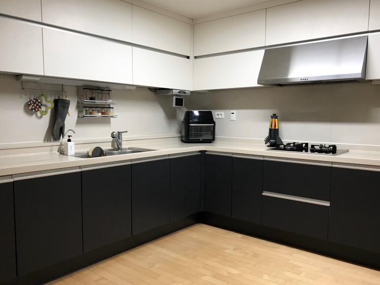 싱크대 상하부장을 셀프페인팅한 주방이에요.