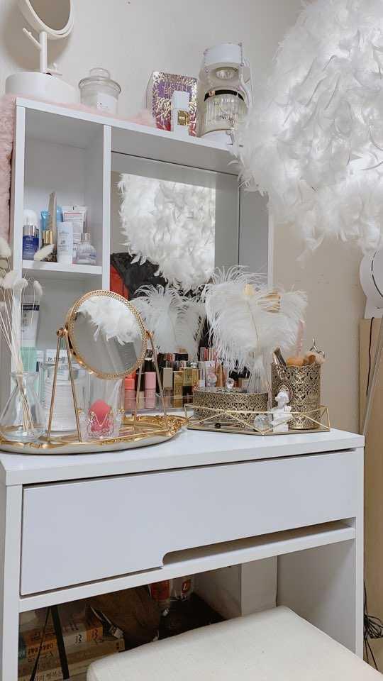 제 화장대에요^^ 겨울이라.화이트로 맞춰꾸며봤어요