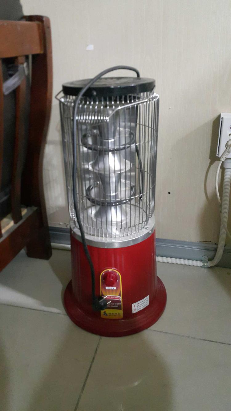 제자리앞에 있는 소형 전기난로에요