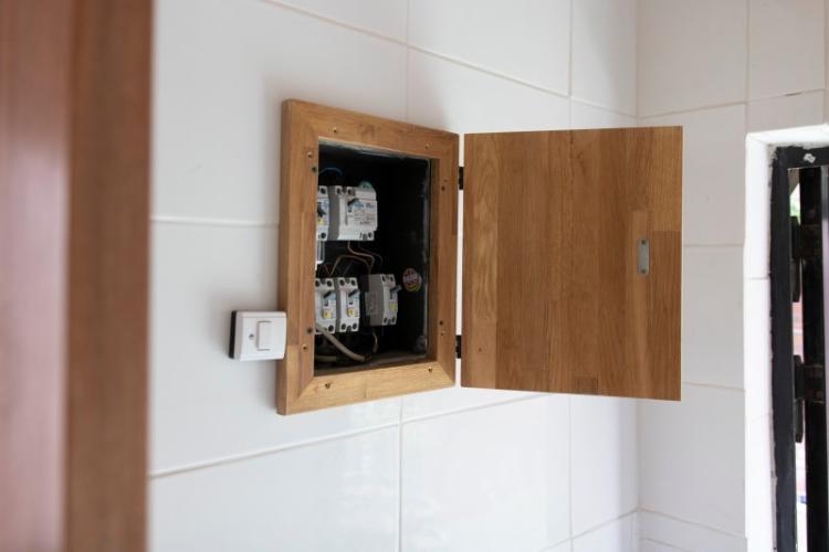 두꺼비집을 보기 깔끔하게 덮개를 원목으로 만들어줬어요