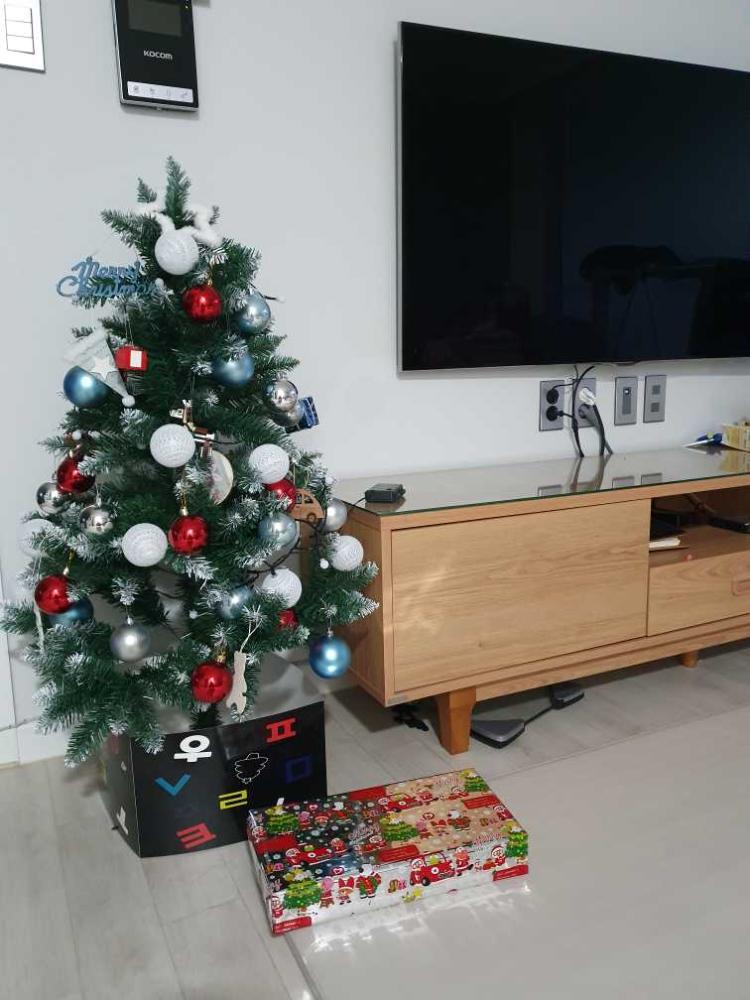 거실이예요 크리스마스트리는 아이가 만들었어요