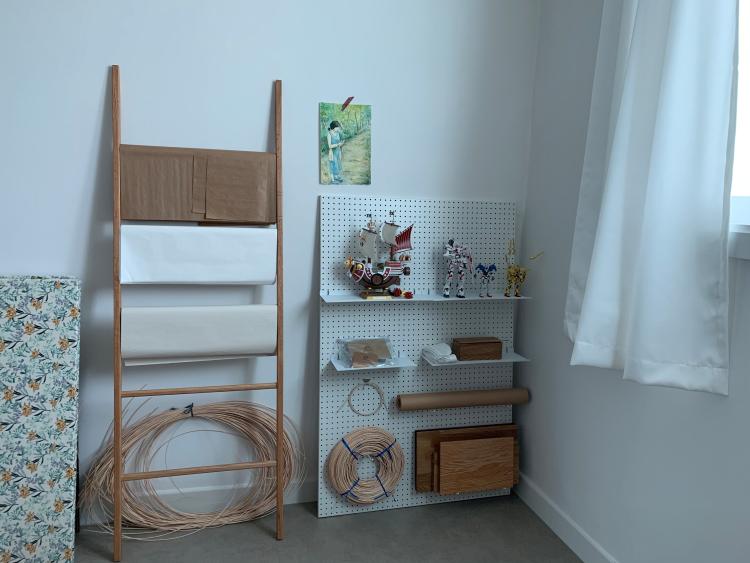 서재 겸 작업실입니다. 포장지를 사다리에 정돈해놓고 건담조립한 것도 타공판에 정리해두었어요