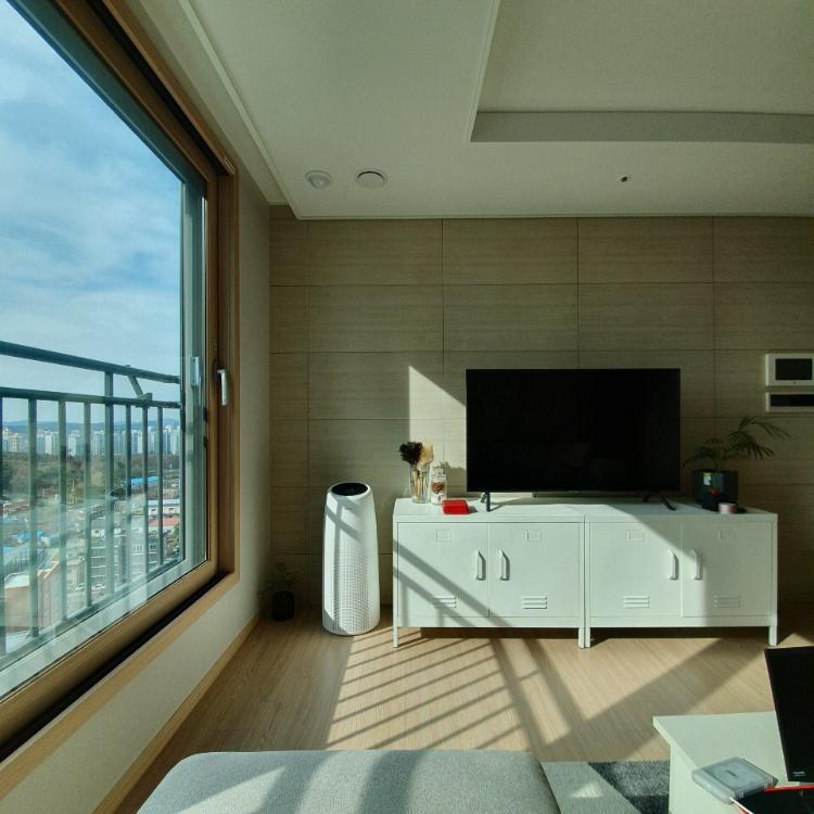 햇살잘들어와 편안하고 아이보리와 베이지우드느낌이라 포근한느낌의 저희집거실입니다