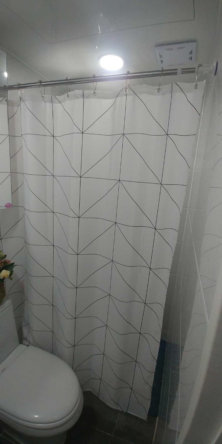좁은화장실을 방수커튼으로 넓어보이게 효과주기