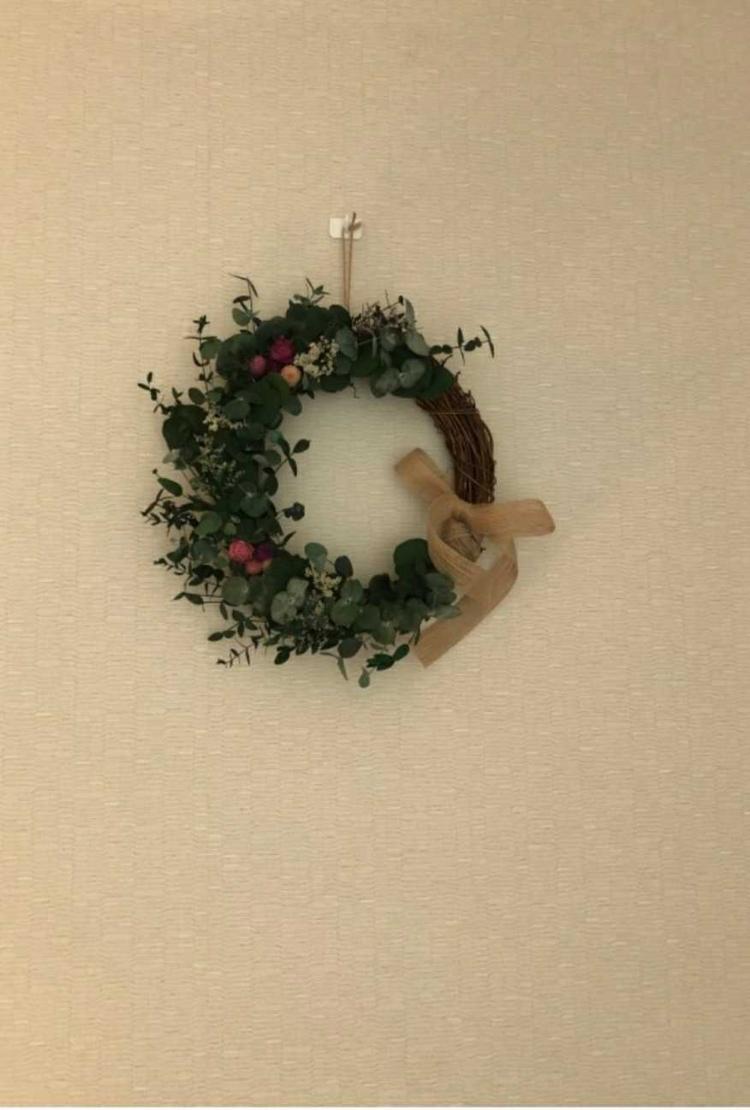 거실벽 한켠을 차지한 플라워 리스입니당