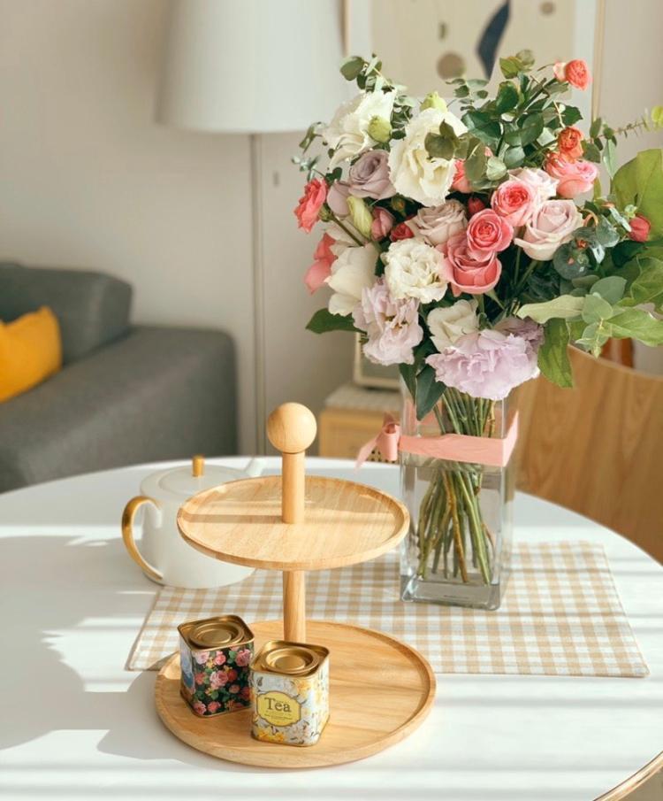 배란다 확장한 부분에 원형테이블 두고 종종 홈카페를 즐깁니다 ^^ 햇살 맑은 날 예쁜 꽃과 함께💕