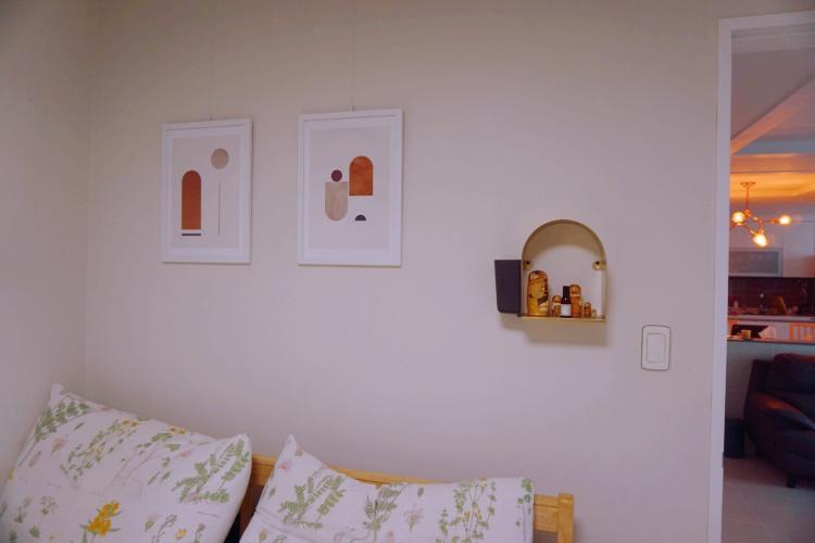 휑한 침실 머리맡에 화이트 우드액자로 북유럽 추상화를 걸어주었더니 따뜻하고 안정감있는 공간이 되었어요^^