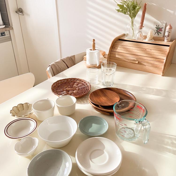 날도 좋은 김에 설거지한 그릇들도 정리하려고 꺼내두고 보니 예뻐서 찍어두었어요.