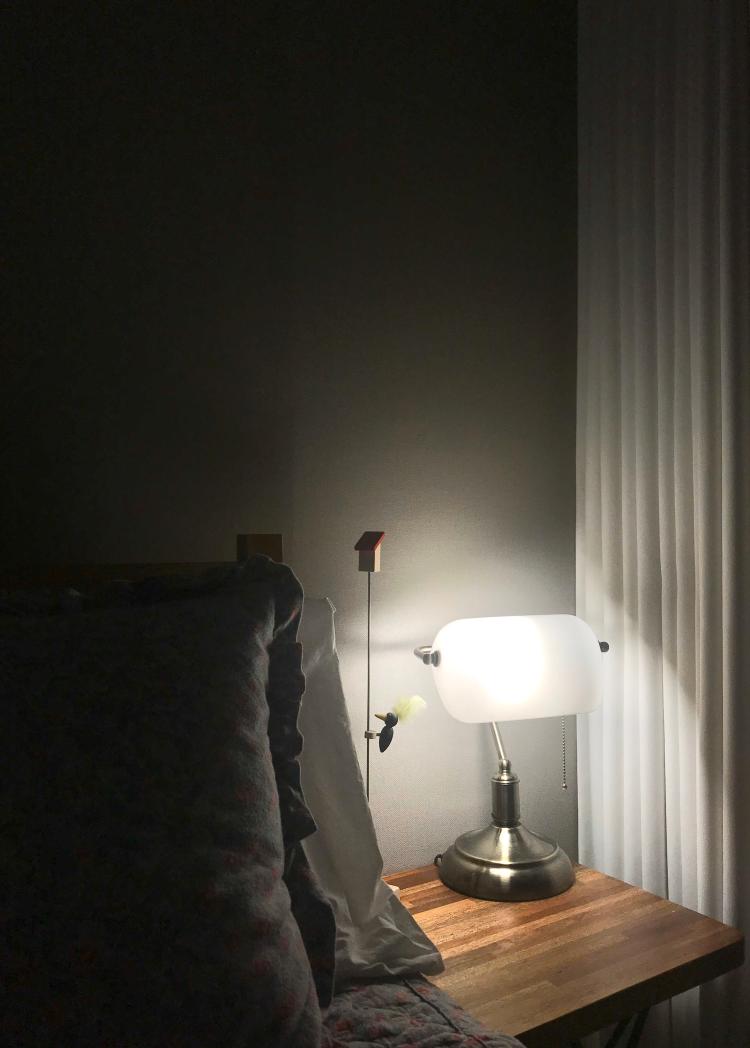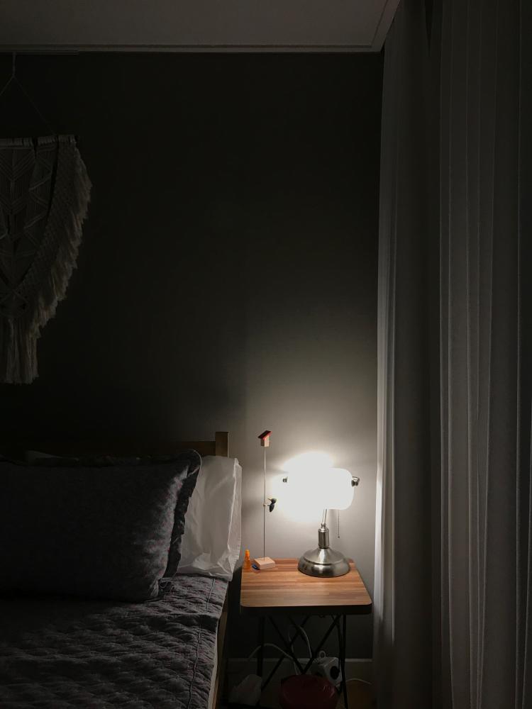 작은 불빛에 의존한 침실이예요.