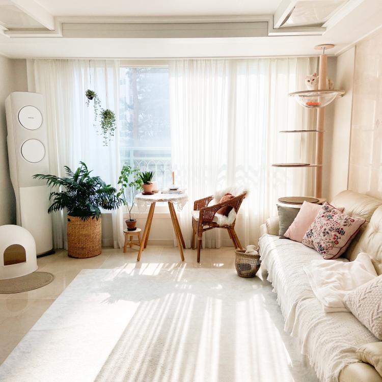 평화롭게 햇빛이 잘 드는 우리집 거실 모습이에요.