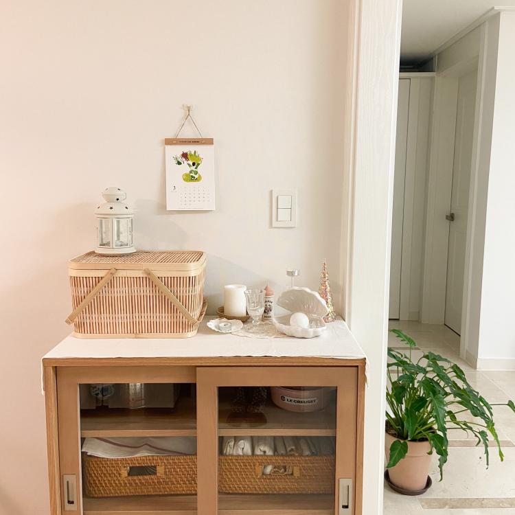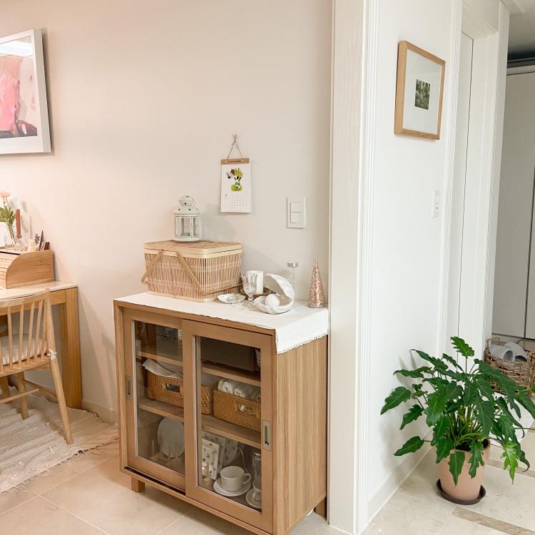 주방에 있는 그릇장 위는 제가 늘 여러가지로 장식하고 꾸미는 공간이에요.