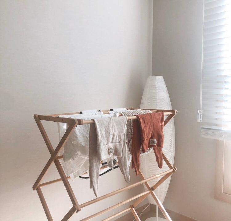 예쁜 원목 빨래건조대에요