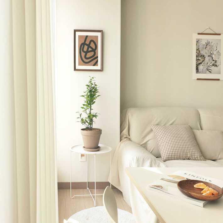 거실공간이 더 화사하고 따뜻한 분위기로 바뀌어서 더 오래있고싶은 공간이 되었어요.