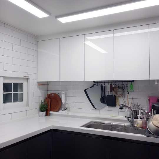상부장을 한쪽에둔 화이트 주방이예요,