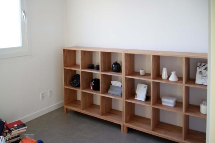 이사오고나서 3단책장 두개를 들여놨어요. 낮은 책장은 방을 넓어보이게 합니다