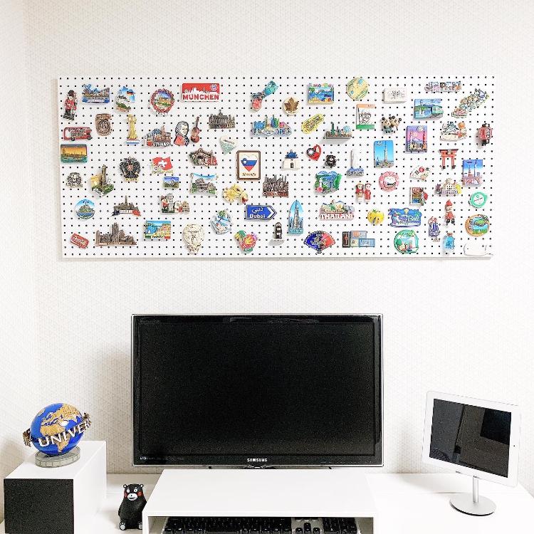 타공판 설치해서 여행 마그넷을 붙여놨어요😊