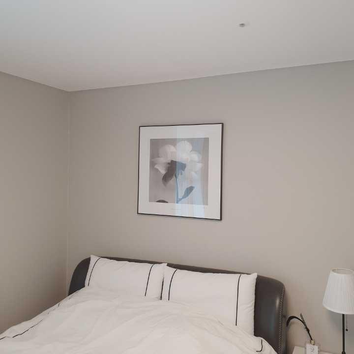 침실에 포인트를 작약액자로 주었어요.