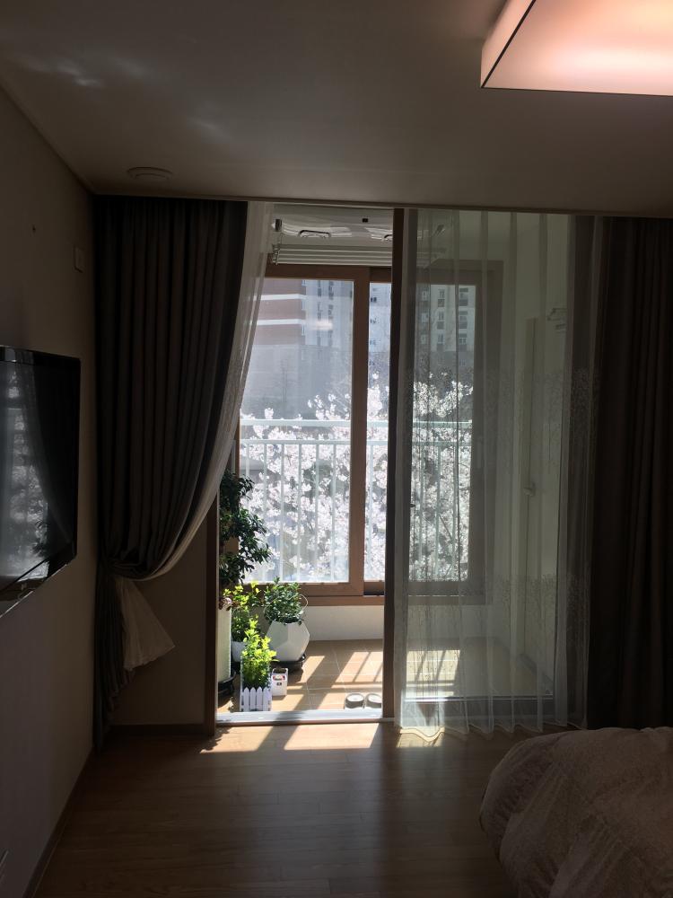 안방 베란다쪽입니다 마침 벚꽃이 활짝펴서 너무 아름다워요