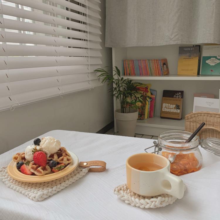 베란다에 안 쓰던 책장을 옮기고 작은 북카페를 만들었어요.