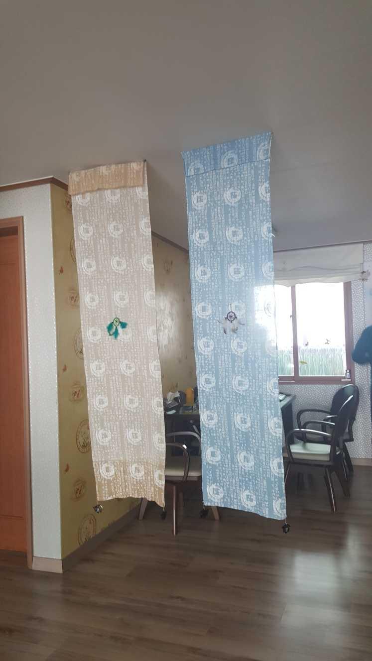 거실과 식탁 사이에 파티션을 만들었어요