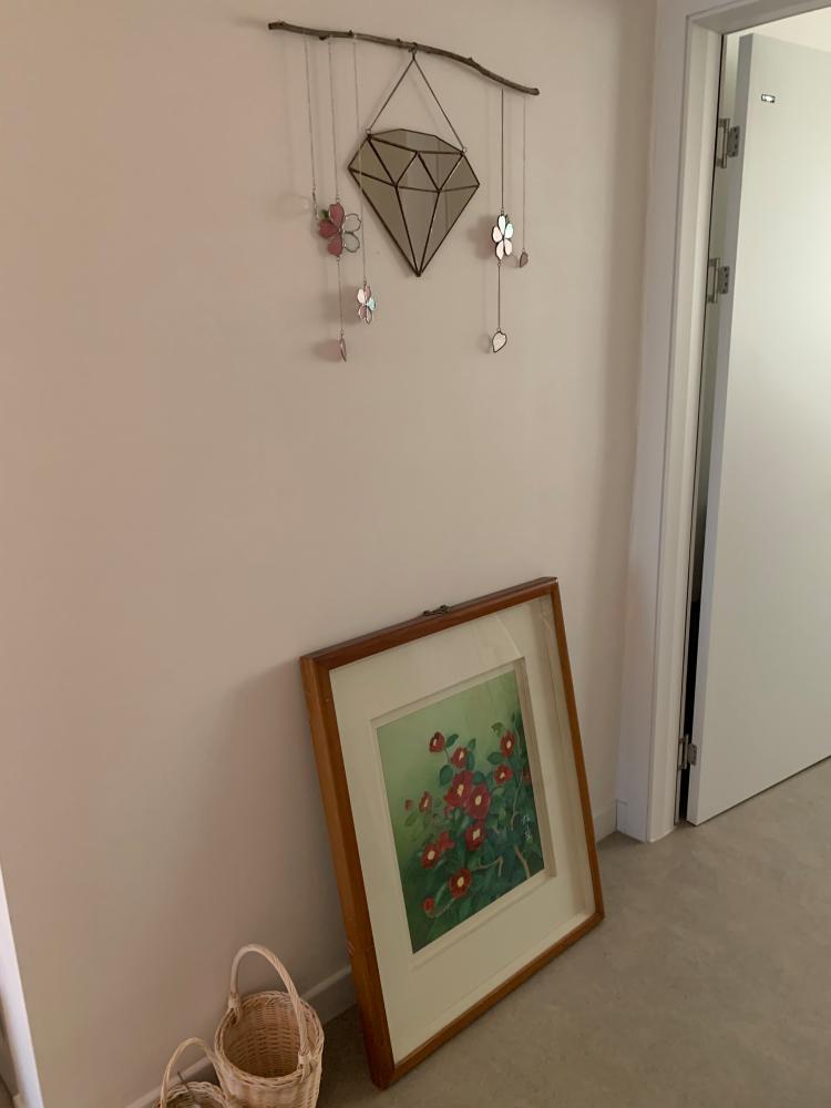 거실 현관 들어오자마자 보이는 곳에 동백꽃 액자를 두었어요.