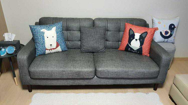 한샘 패브릭 느낌에 인조가죽 쇼파 입니다.