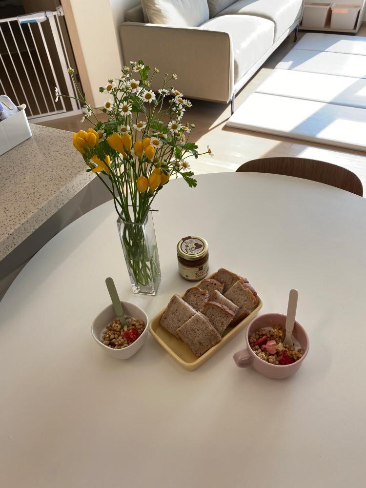 주말 아침 너무 일찍 일어난 아가 덕분에(?) 아침식사는 간단히 아메리칸스타일입니다 ㅎㅎㅎ