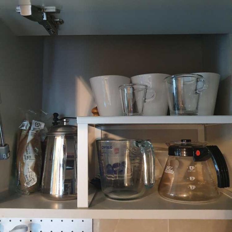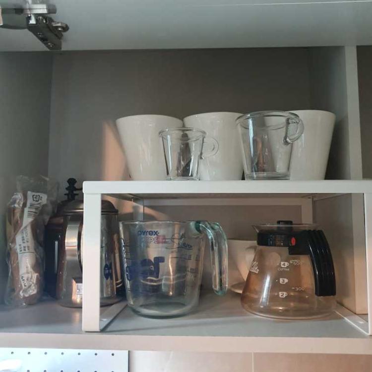 주방 선반에 접시대신 인서트 넣어 미니 홈카페 만들었어요