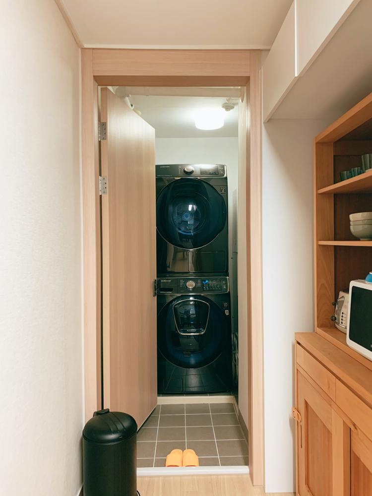 세탁 전용 공간이 있으니 좋아요 :) 건조기 세탁기 세트로 사서 잘 쓰고 있답니다