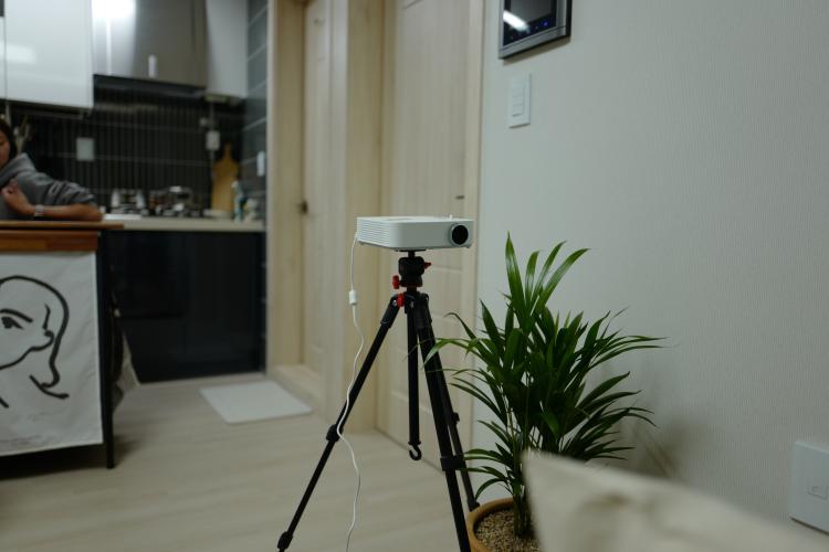 저희집의 텔레비전 역할을 해주는 빔프로젝터에요. 자기전에 영화를 보기도 하고 거실에 사진을 쏘기도 해요.