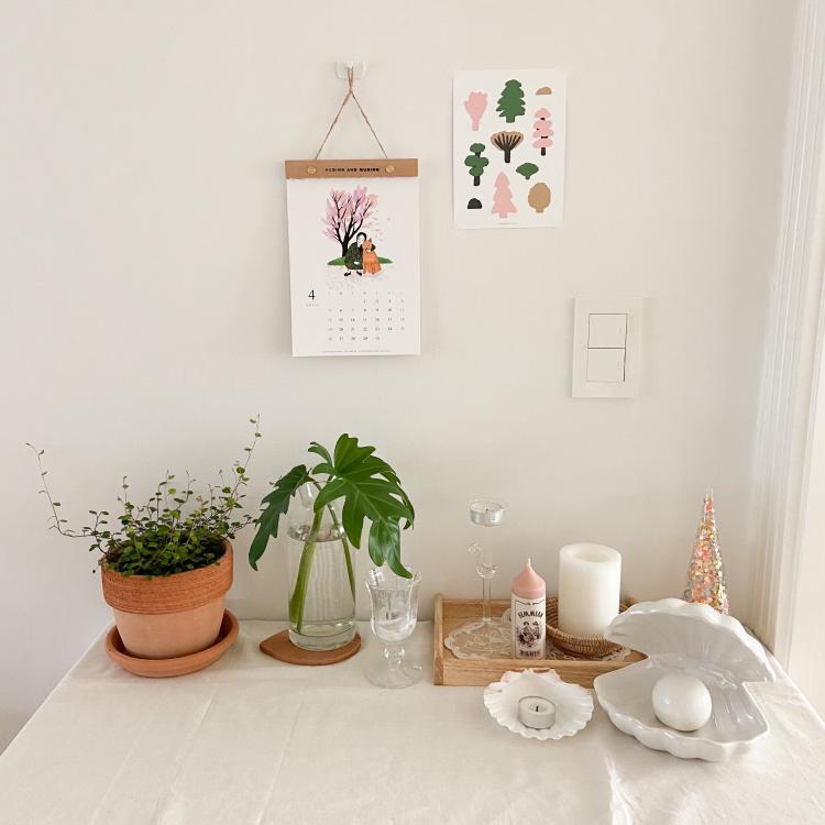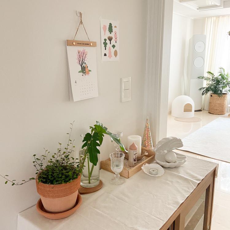 그릇장 위를 푸릇푸릇 싱그럽게 바꿔봤어요 ㅎㅎ