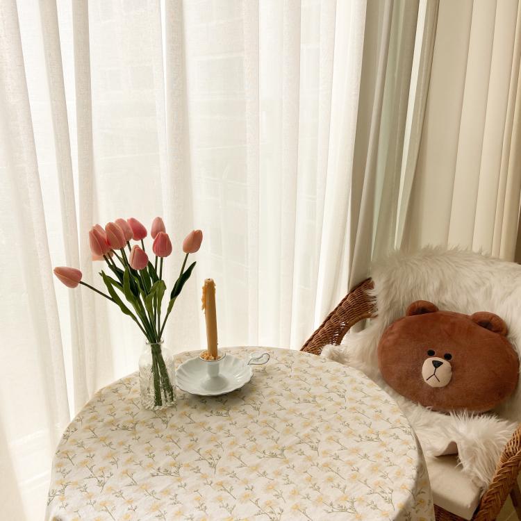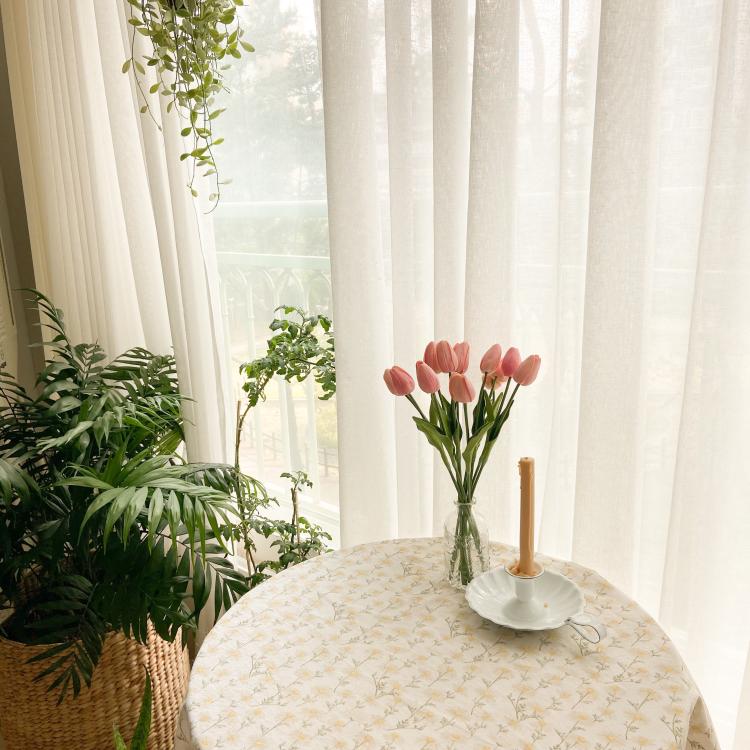 핑크색 튤립과 노란 캔들로 분위기를 바꿔본 거실 테이블이에요. :)