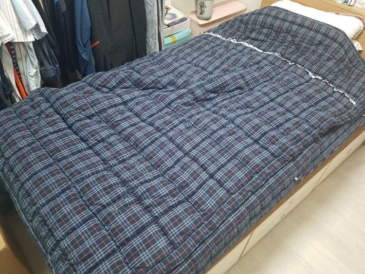 여름을 맞아 시원한 네이비색 이불로 바꾸었어요