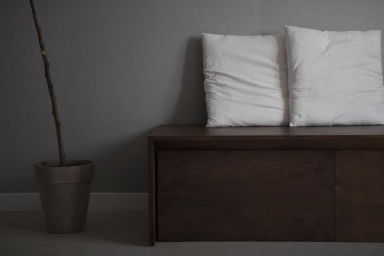 수납벤치를 두어 서랍겸 벤치로 쓰고 있습니다.