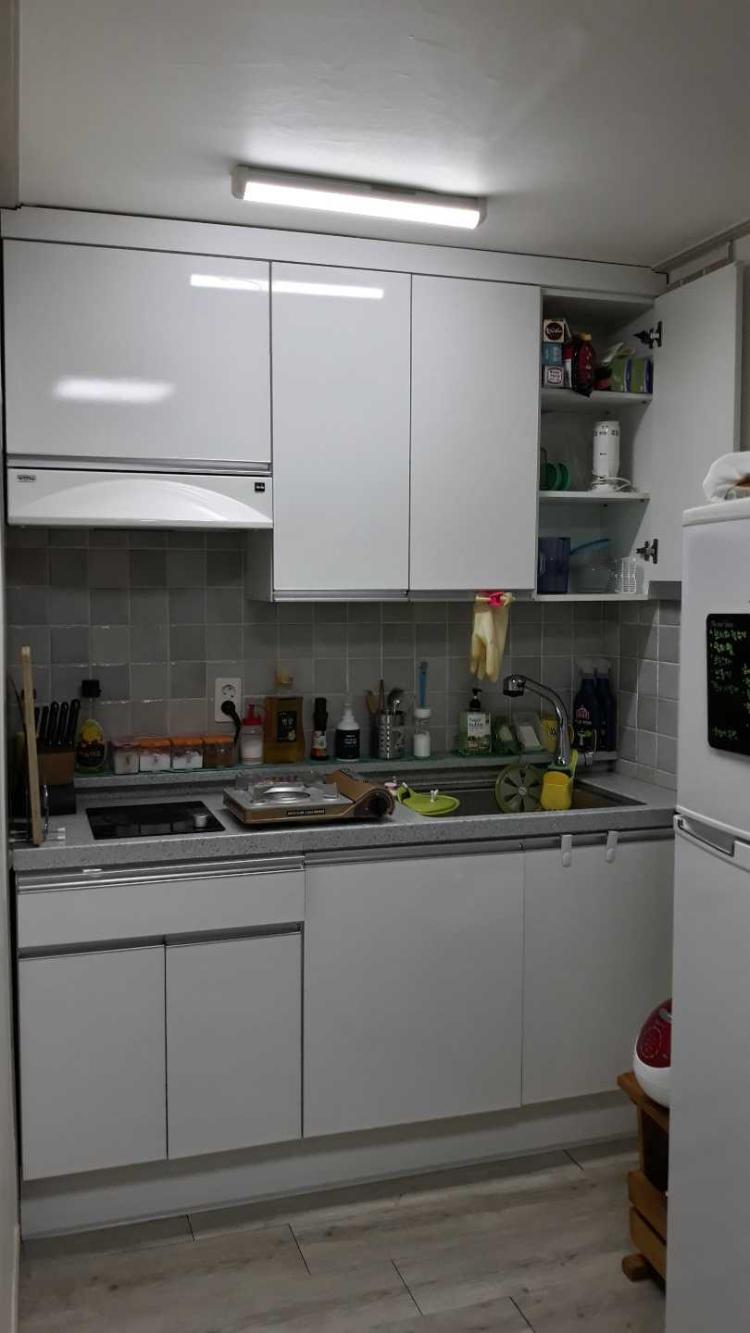 서로 등을 부딪히면서도 하하 호호 댈수있는 저희 주방이에요 자는 곳 화장실 주방 다 붙어있는