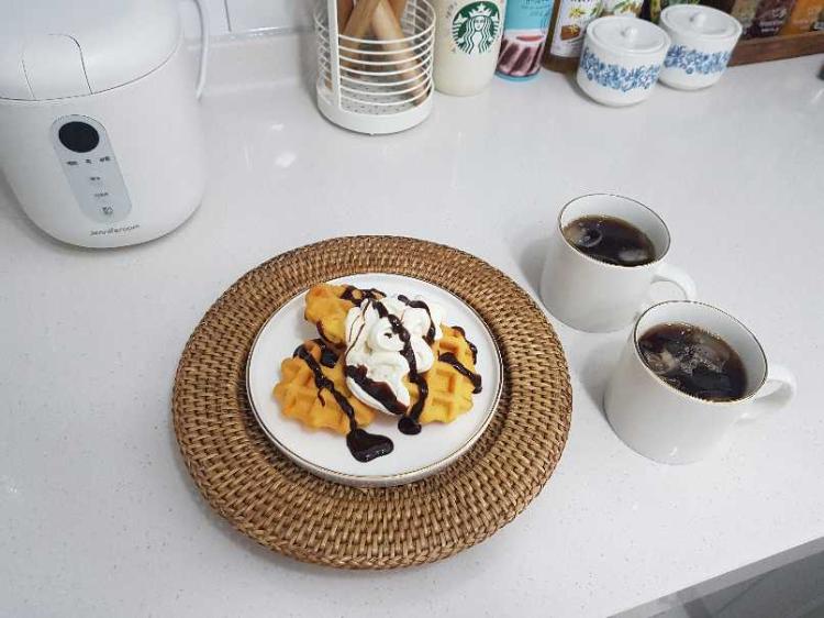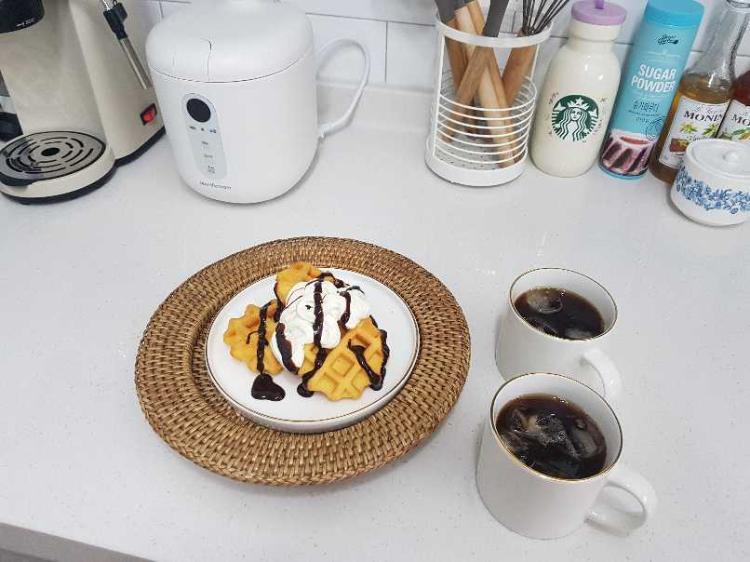 주말 아침 신랑과 함께 와플에 아이스 아메리카노 한잔~