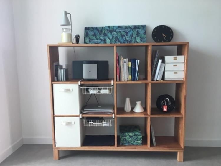 거실 티비자리에 책장을 두었습니다. 책은 물론 자질구레한 용품들을 바로 꺼맬 수 있게 보관하는 용도로 쓰고 있어요