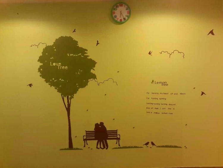 거실 한쪽 벽이 허전해서 포인트벽지 스티커를 구입해 부착했어요