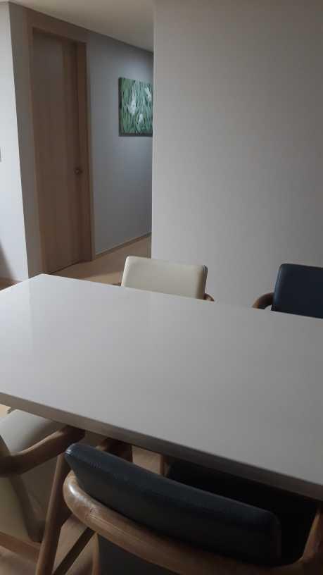 깔끔한 대리석식탁과 가죽의자 그리고 토끼액자가보여서 기분업.
