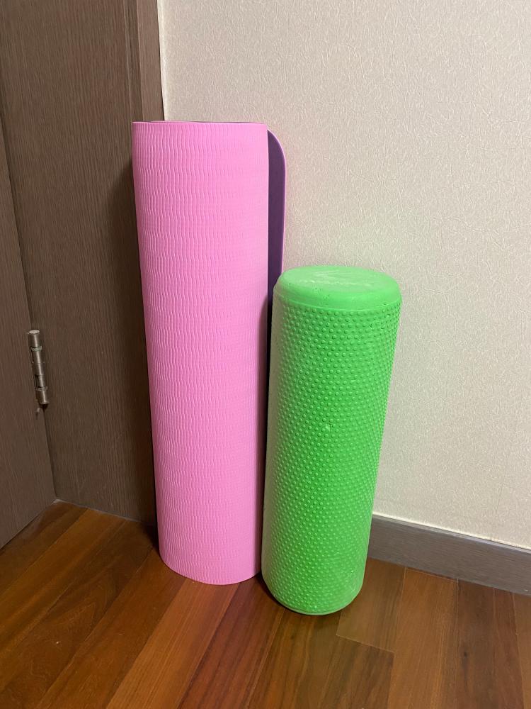 방문 옆에는 홈트할 때 쓰는 걸 정리해놨어요.