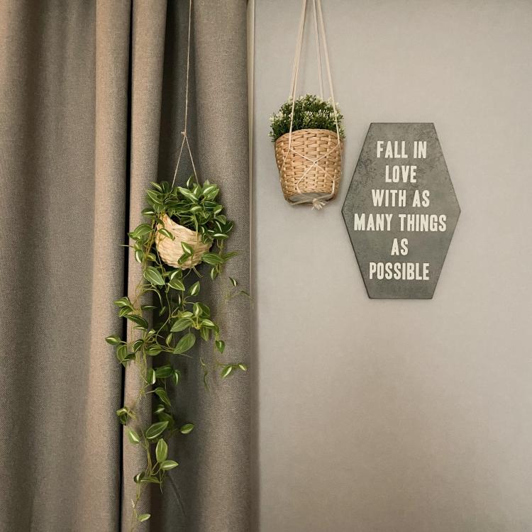 낮에 자는 남편을 위해 암막커튼으로 햇빛을 차단해놔서 이 곳에 걸어둔 식물은 모두 조화에요 ㅎㅎ