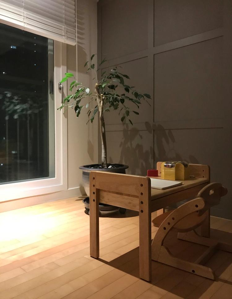 거실 한켠 아이의 공간이에요~ 육퇴후 아이의 흔적을 치울때면 입가에 미소가 지어져요 :)