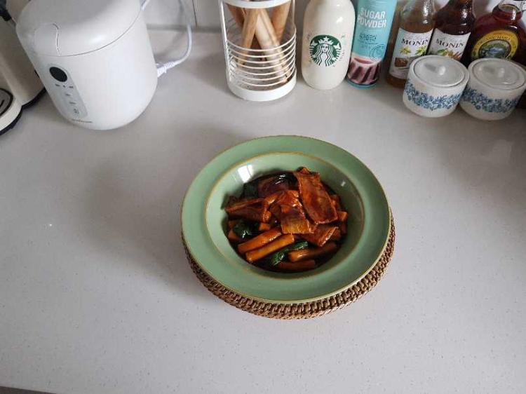 냉동식품으로 요리했지만 그릇에만 잘 담아도 먹음직스러워요~