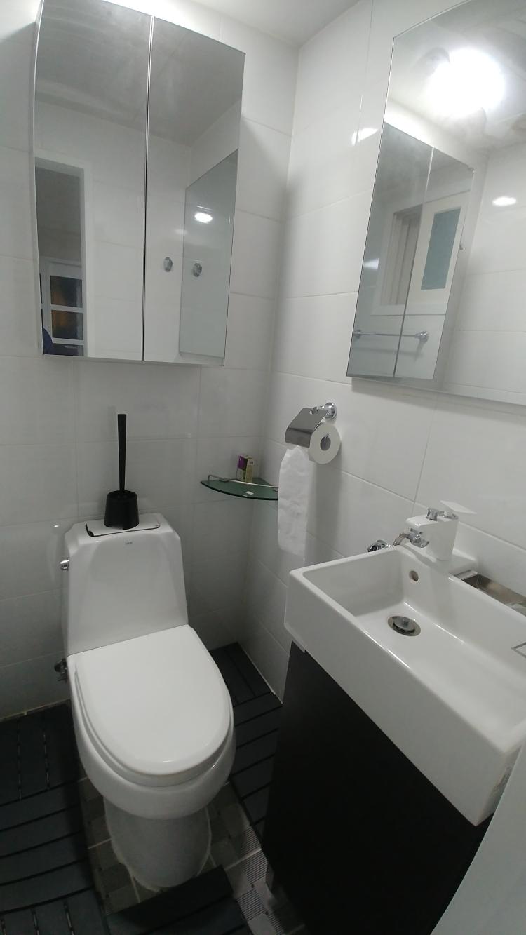 안방 화장실에 변기랑 샤워수전만 있어서 이케아에서 릴룽엔 세면대와 하부장 구입해서 설치했어요.