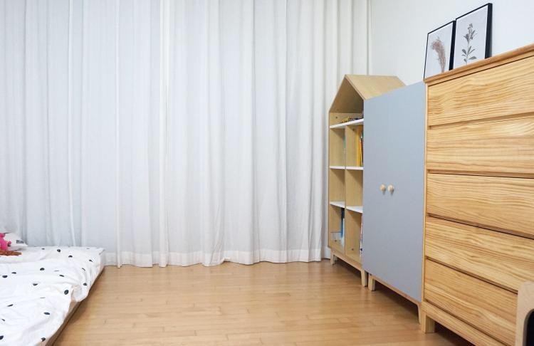 아이의 안전을 고려해서 저상형 침대 프레임을 사용하고 있어요 :)