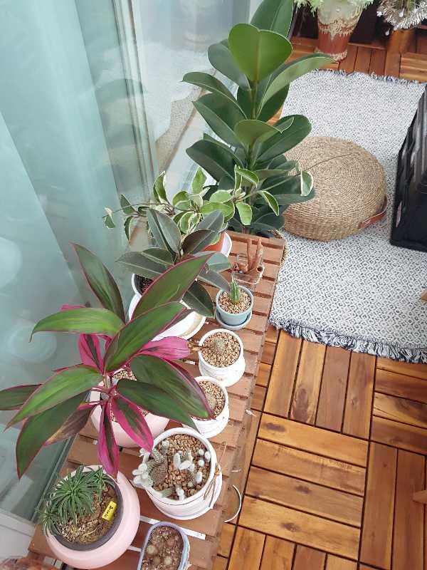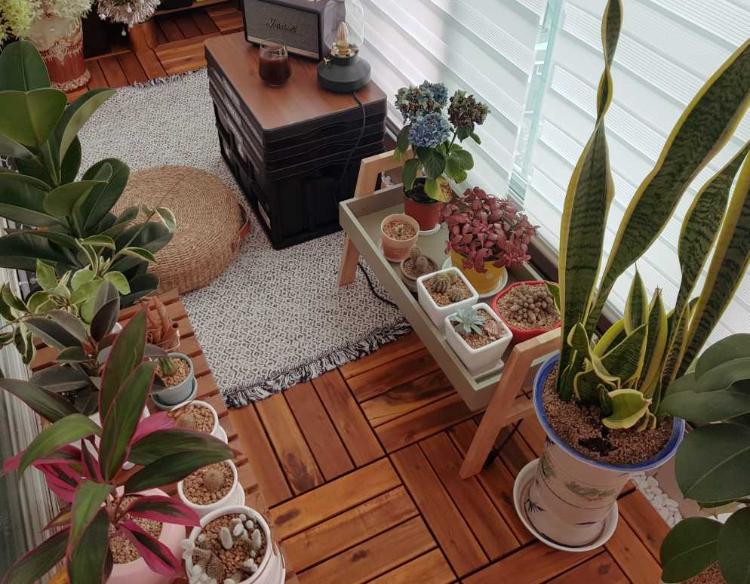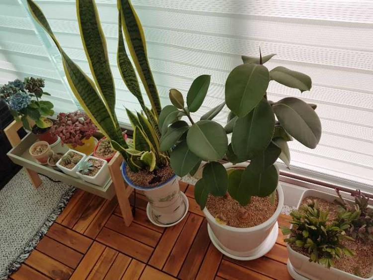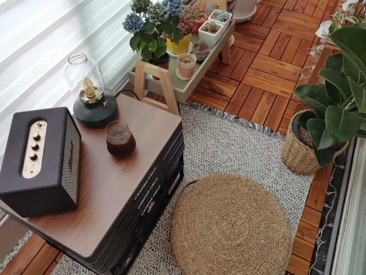 플랜테리어로 꾸민 베란다에서 블루투스로 노래 들으며
