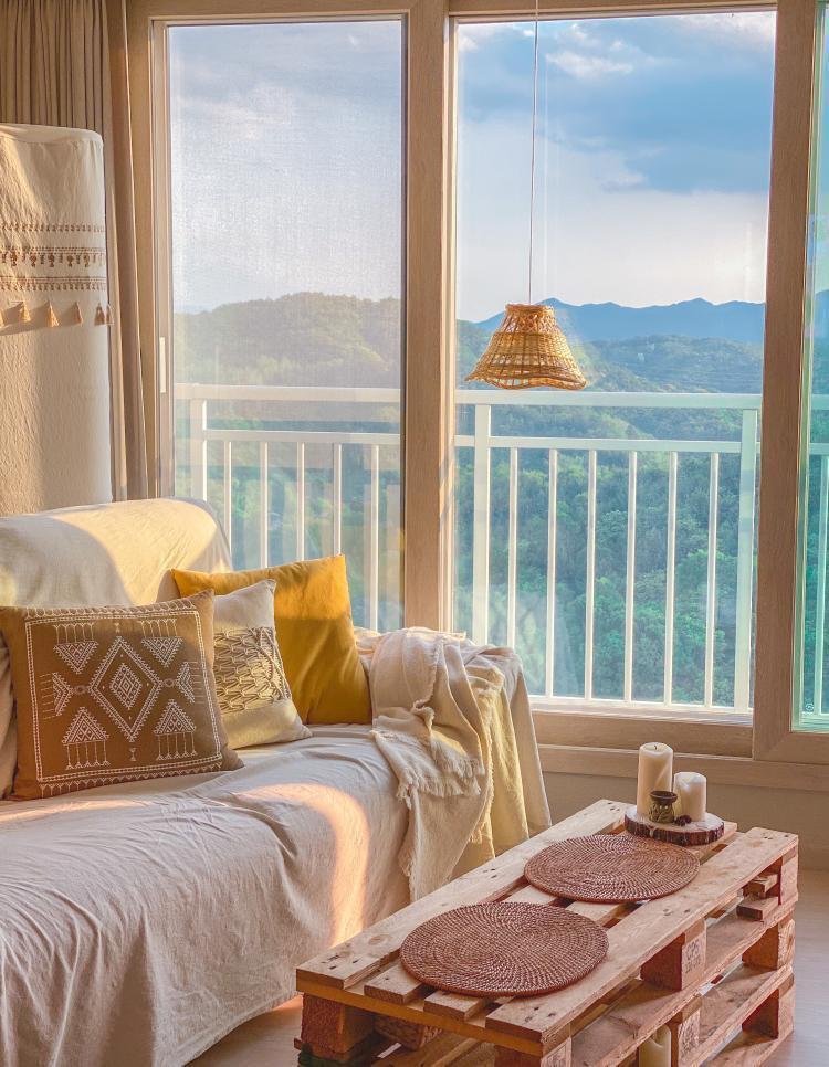 소파에 앉아 숲속 거실뷰를 감상하면
