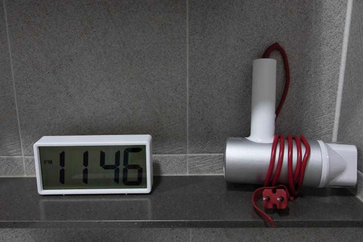 욕실에 큰 시계를 두어 멀리서도 잘 보이게 했습니다.바쁜아침에 시간을 확인할수 있어서 좋네요.