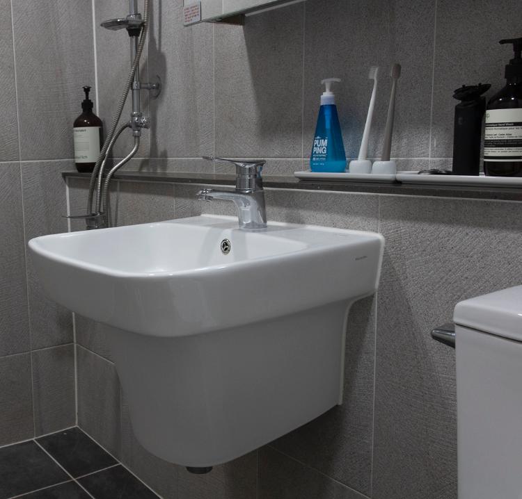 세면대가 끝까지 있지 않으니 청소하기 좋습니다:)